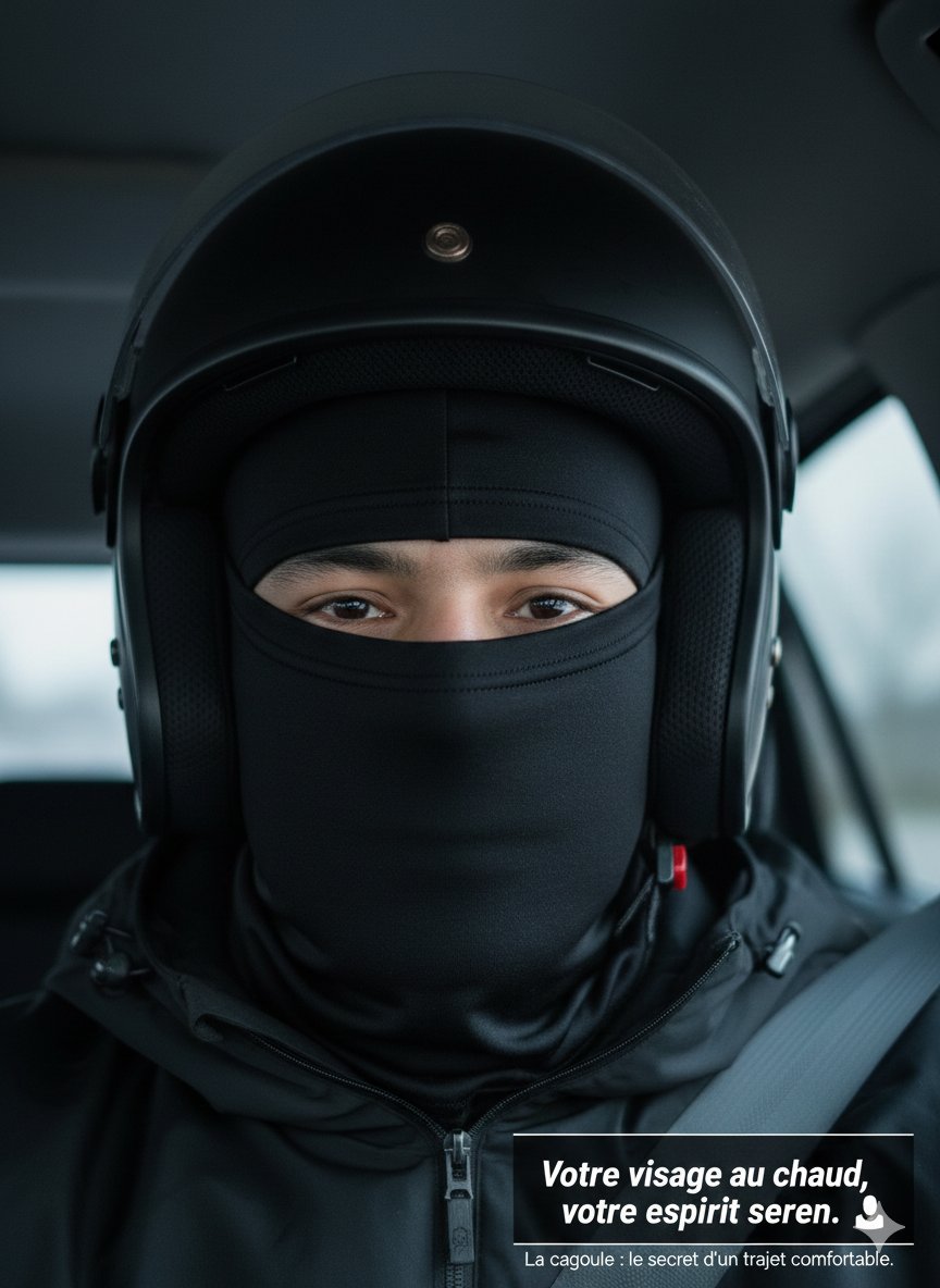 - 👤 قناع وجه (Cagoule) مرن: قماش مطاطي مريح يوضع تحت الخوذة لحماية الوجه والرقبة من الهواء البارد دون إعاقة التنفس.