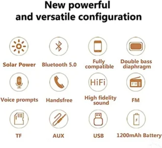 [عمر بطارية طويل]: حجم صغير، سعة كبيرة. مزود ببطارية ليثيوم مدمجة قابلة لإعادة الشحن بسعة 1200 مللي أمبير في الساعة. تتيح لك الاستمتاع بالموسيقى دون انقطاع من النهار إلى الليل. تلبي احتياجاتك طوال اليوم. العب بمستوى صوت متوسط عند الشحن الكامل، مما يمنحك رحلة موسيقية دون انقطاع على مدار 24 ساعة. نوع مصدر الطاقة: يعمل بالطاقة الشمسية